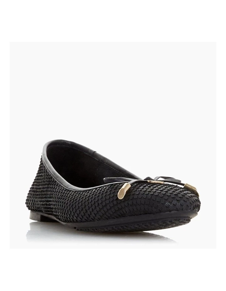 Amp up your outfits with this embossed ballet pump from Dune. Featuring a bow detail with a metallic branded charm for a signature look. It’s finished in a classic round toe design.