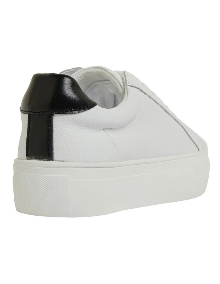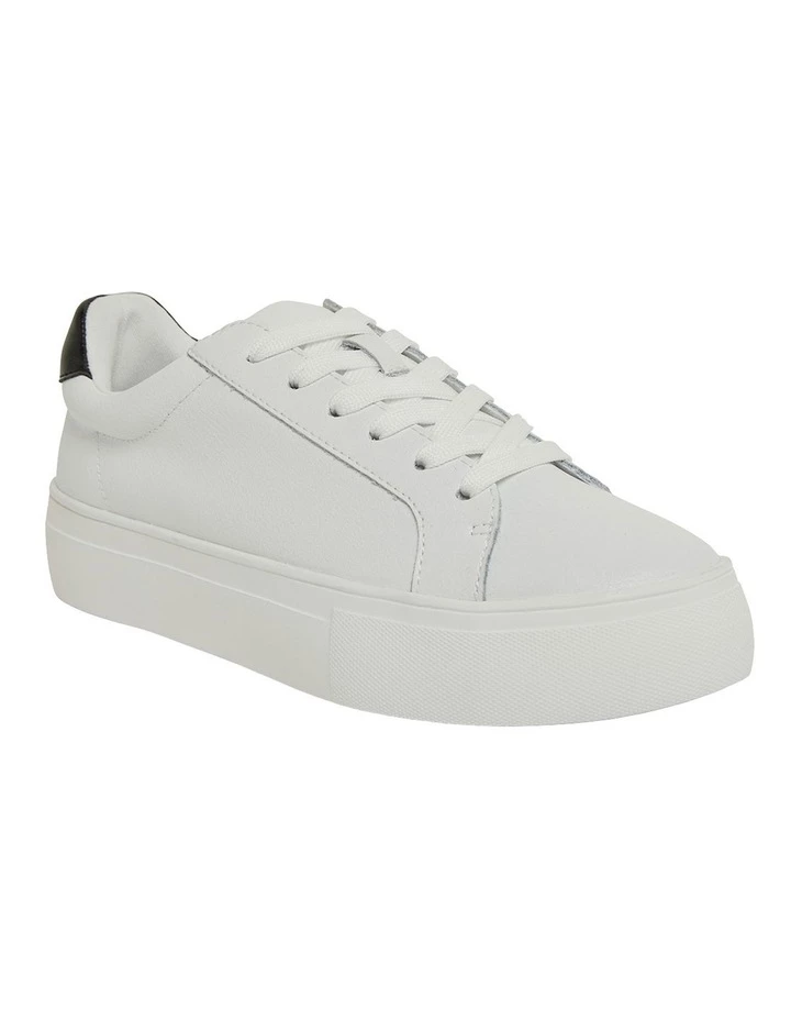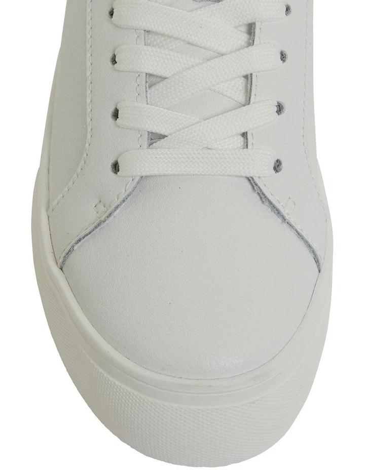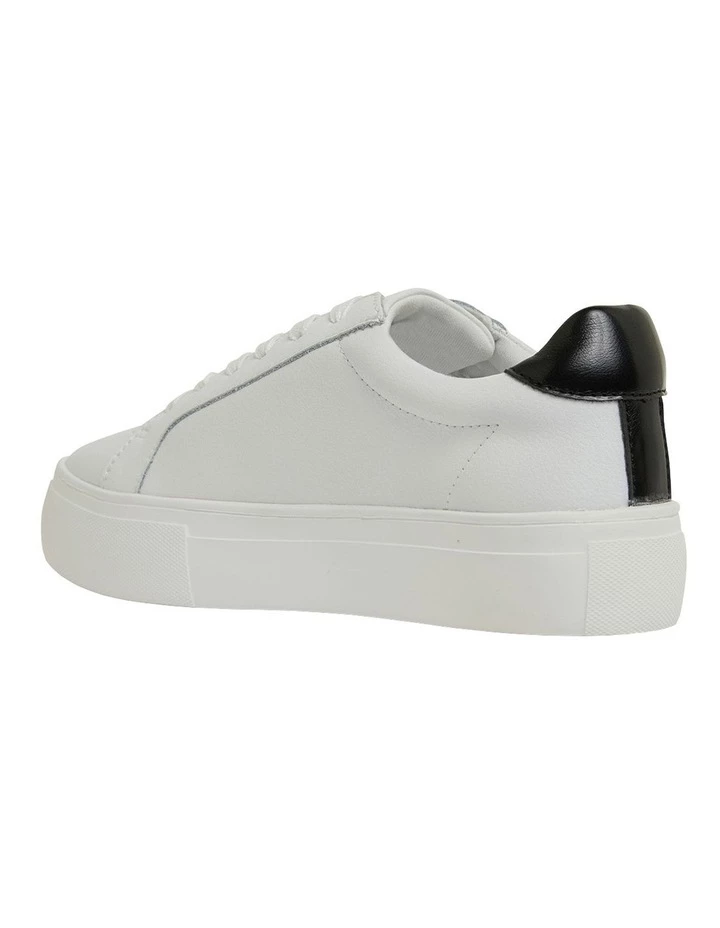 Tap into the elevated minimalism trend with FRENZY. The low top silhouette is crafted with a smooth leather upper, contrasted with a colourful heel tab, then fastened with a lace-up vamp and a thick, elevated sole. Wear them as a casual accompaniment to smart separates.