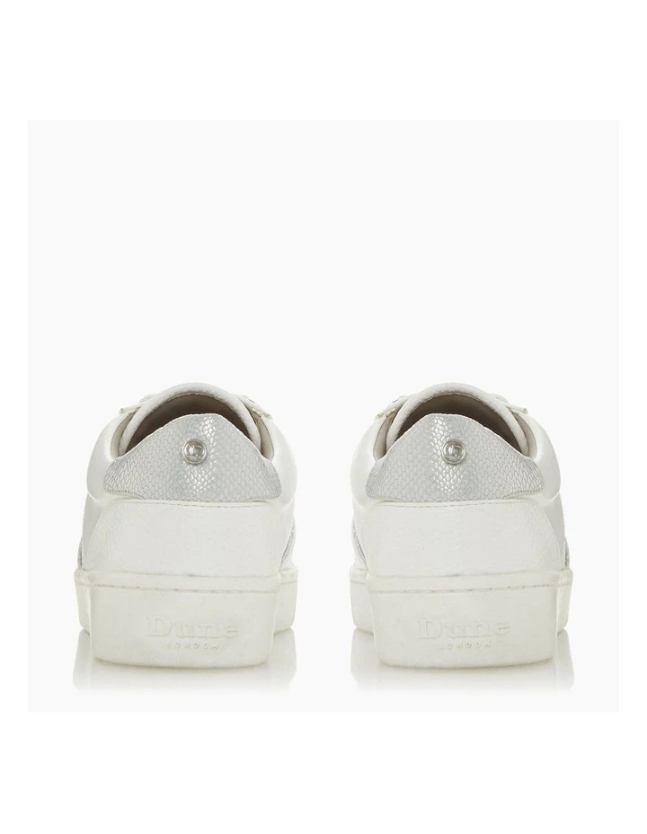 Add a modern finish to your footwear with the Everlee trainer from Dune. Defined with snakeskin-effect panels on the back for contemporary appeal. It’s secured with lace fastenings and complete with a round toe.