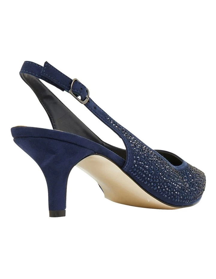 Dazzle on the dance floor with Teagan. This sleek kitten heel pump is adorned with embellishments, an adjustable sling back strap and on-trend pointed toe heel.