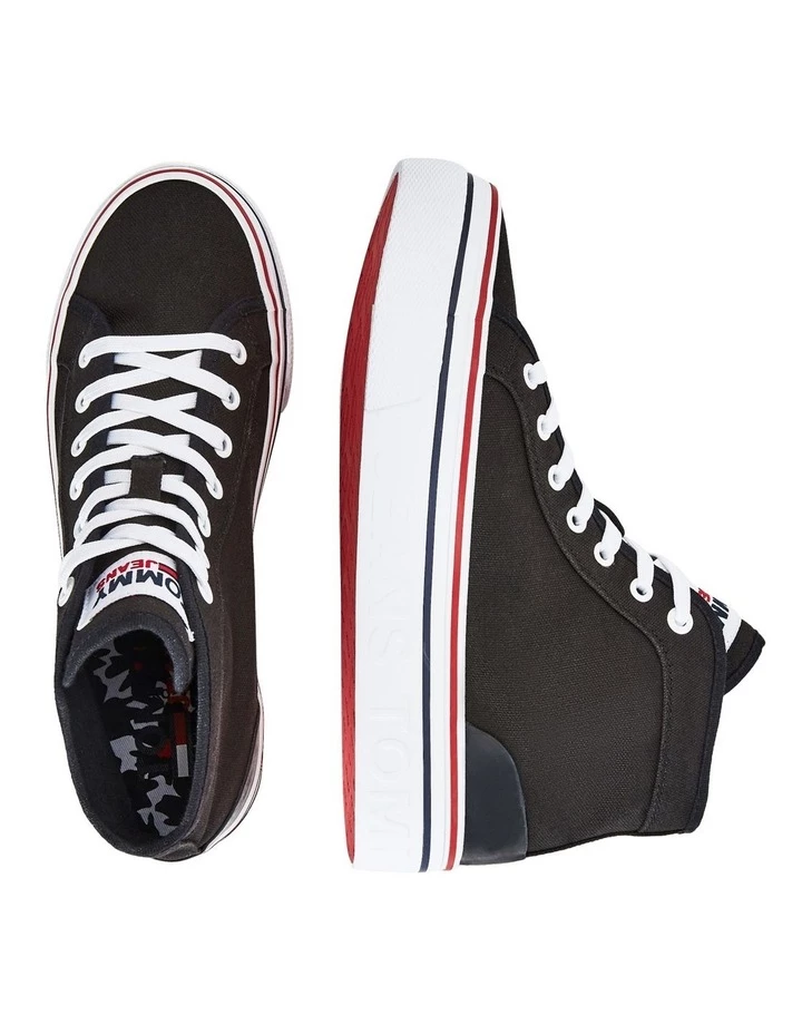 Highlights Recycled cotton and cotton upper Recycled cotton and cotton lining Polyurethane and natural rubber insock Natural rubber outsole Vulcanised Tommy Jeans branding Tommy Jeans flag embroidery on side