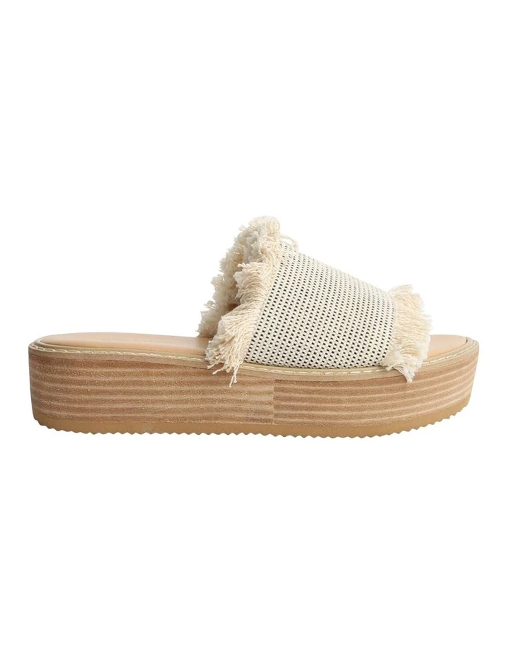 Slip into elevated comfort with the Ebony sandals. Showcasing a textured white and black cotton fringed upper with an open rounded toe and a platform sole.