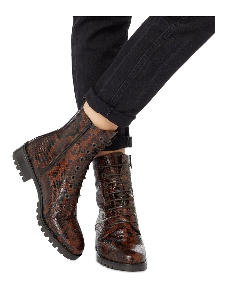 The Prestone boot from Dune will add edge to your footwear line-up. Resting on a comfortable low block heel and shaped with a round toe. It’s fitted with a pull tab and secured with a stylish lace-up fastening.