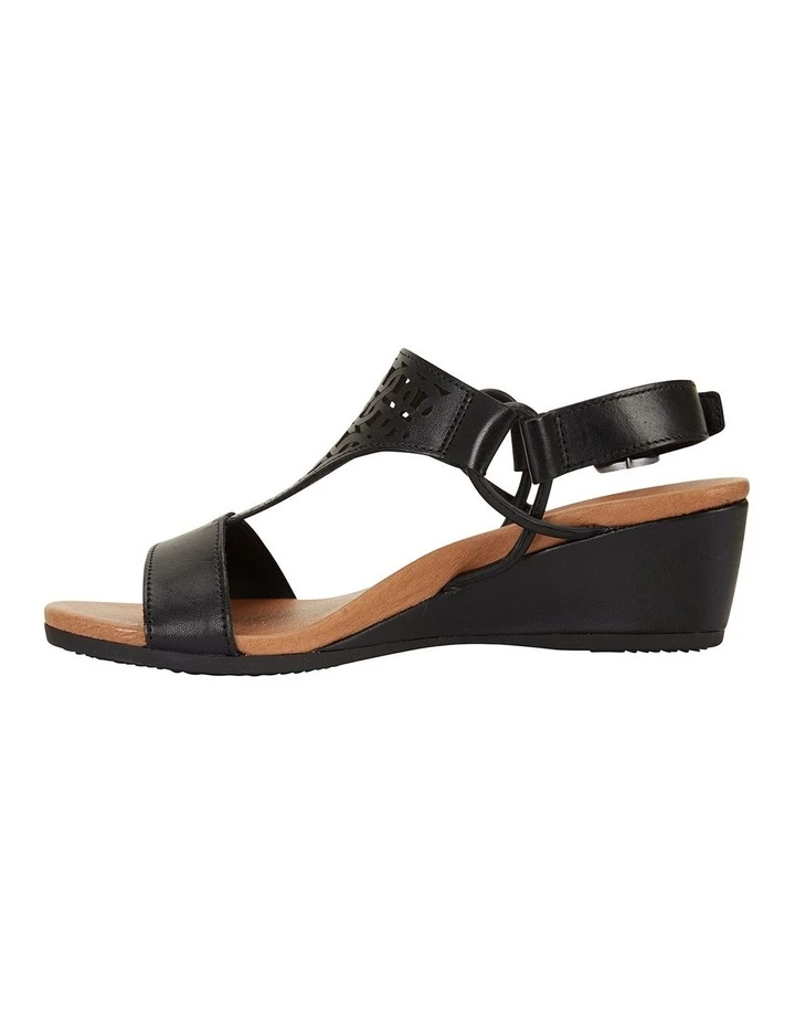 Comfortable and on-trend, MAGNET offers a polished look to every outfit. Dressed with a cut-out T-Bar design, wedge heel and soft padded footed, this style will feel like you’re walking on air! Designed for a comfortable wide fit. Leather Upper Leather Sock Leather Lining Synthetic Sole Approx 5cm heel height