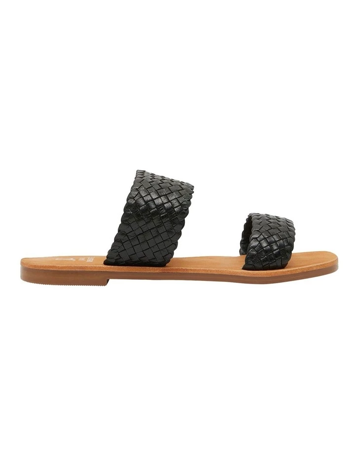 Perfect for your warmer weather ensembles, TORA features twin woven leather straps crafted from premium soft leather. The rounded toe shape design, non-slip grip sole and flattering strap placement all come together to make this slip-on sandal a summer staple. Pair with linen palazzo pants to finish with a luxe weekend look. We recommend going up a size. Approx. 0.5cm heel height Leather upper, Leather lining & Leather sock Non-slip grip sole Round toe shape design Woven upper detail Standard fit (B-fit)