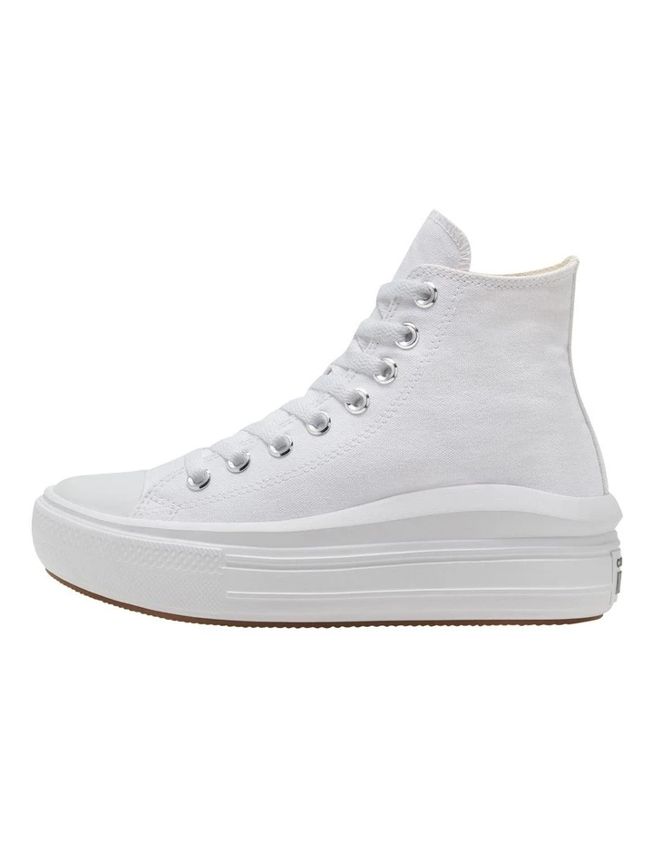 You already know our high-topthat canvas upper, the diamond pattern outsole, and iconic ankle patch. We streamlined this classic silhouette for her and dropped it into an ultra-lightweight EVA cupsole, giving you the Chuck Taylor Move. With extra comfort and height. There she goes.