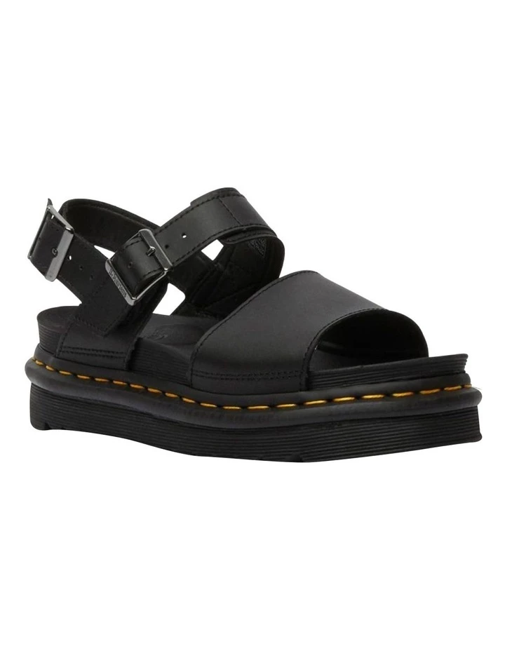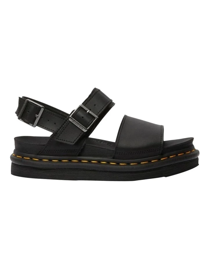 Here’s how we do sandals: with tons of attitude, toughness and our unmistakable Dr. Martens style. The Voss has all that, plus our signature comfort, with two adjustable straps, a super-lightweight sole with a ripple tread, and an ultra-sturdy Goodyear welt. These sandals run a little large, if you are between sizes we recommend buying a size down. Two adjustable buckles Slight wedge for additional height Soft, breathable lining Built on the super-lightweight EVA sole, with a ripple tread Goodyear-welted product Made with a smooth, coated leather with a matte finish Platform height:3.8 cm