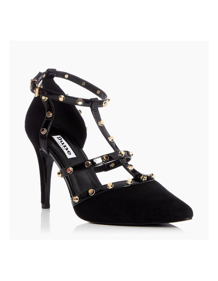 Make a statement with the stylish Clea court shoe from Dune. Featuring a striking print accented with gold-toned studs on the straps. It’s finished with a sleek pointed toe and rests on a medium stiletto heel.