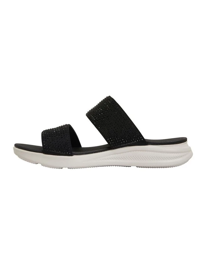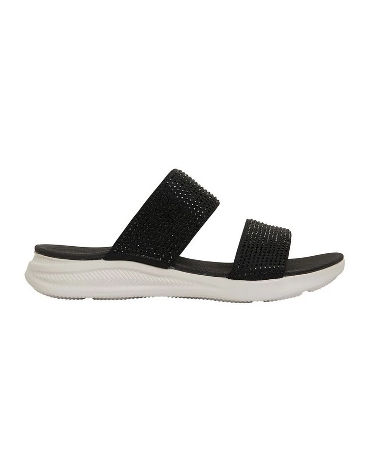 Master low key looks with high impact style wearing NOVATO. The open toe slip on design is crafted with a double foot strap adorned with co-ordinating diamantes, featuring a moulded comfortable foot bed, then rest on a slightly elevated back sole. Slip them on as a timeless accent to a vacation edit.