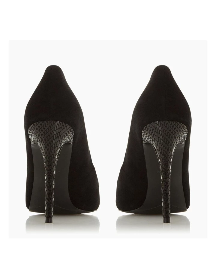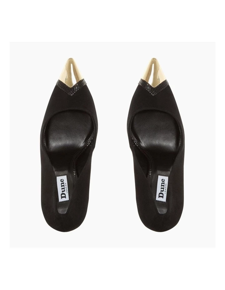 Opt for bold striking femininity with the Boutique court from Dune. A timeless stiletto heel elevated with a contemporary metal toe cap. Its modern femininity finished with a striking high stiletto heel.