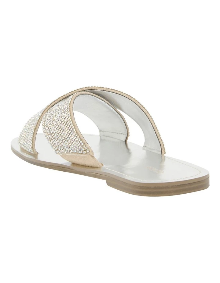 A classic flat sandal gets a luxe twist in the GUESS Glitzin. Featuring an open-toe, crossed gold sparkly straps and logo detail, this is the perfect pair to elevate any summer ensemble.