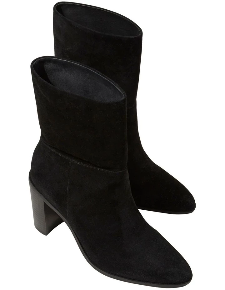 This soft leather boot is a winter staple, with an elegant 9cm heel and slightly rounded toe. The premium leather features seam details and extends slightly above the ankle for a flattering and comfortable fit.