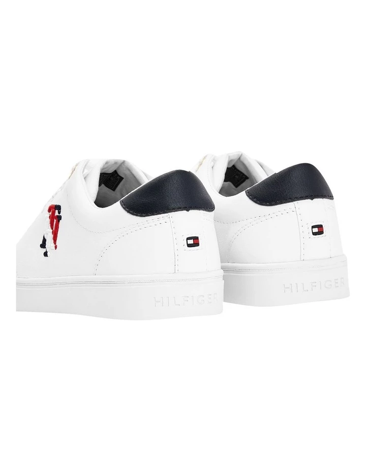 Shimmering hardware and a 3D Tommy Hilfiger monogram elevate these low-top trainers, crafted from smooth leather with a lace-up design. Highlights: Leather upper Polyurethane and natural rubber lining Polyurethane and natural rubber insock Natural rubber outsole Cupsole TH monogram on side Tommy Hilfiger debossed logo at heel Tommy Hilfiger branding Tommy Hilfiger rubberised flag at heel Fit/Size/Composition Lace-up Low-top 100% leather