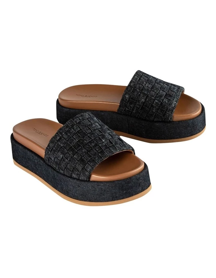 Slip straight into style with our Rio platform sandals. Showcasing a dark textured denim upper with a contrasting tan leather lining, a chunky platform sole and a comfortable rounded toe-shape. Pair with a breezy dress for a casual look.