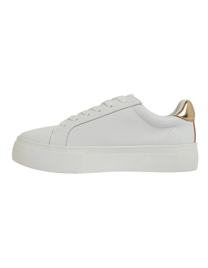 Tap into the elevated minimalism trend with FRENZY. The low top silhouette is crafted with a smooth leather upper, contrasted with a colourful heel tab, then fastened with a lace-up vamp and a thick, elevated sole. Wear them as a casual accompaniment to smart separates.