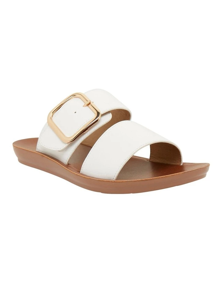 The minimalist design of GARNET is intentionally understated to create a timeless silhouette. The open toe strap is complemented with a foot strap accented with a gold hardware buckle, then set on a comfortable moulded footed. Slip these on to elevate any vacation wardrobe.
