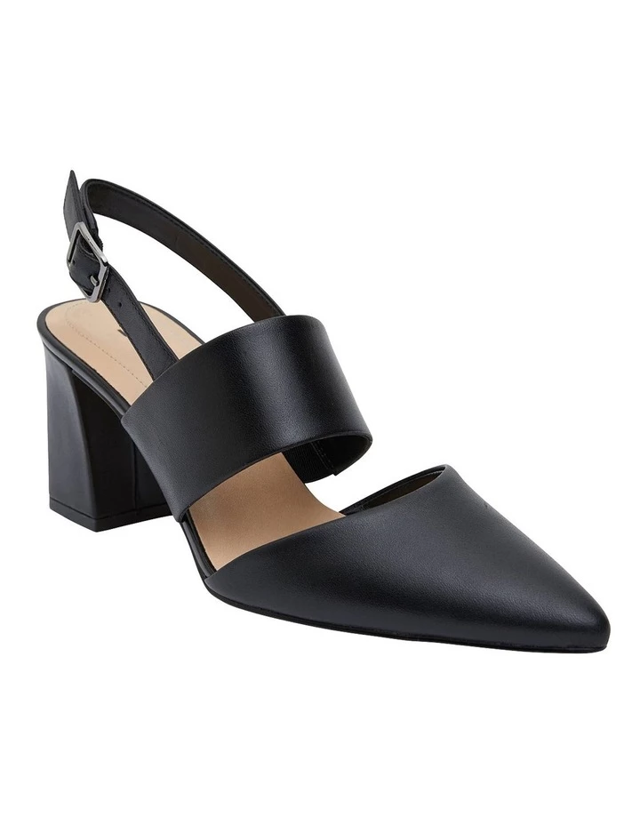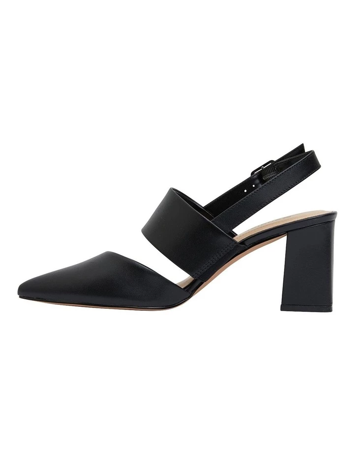 The Kitson pointed toe heel is set on a block heel, it features a wide leather band over the foot and an adjustable back strap. Kitson will make a great addition to your workwear wardrobe this season. Approx. 7cm heel Leather and synthetic upper Synthetic lining Synthetic sole Standard fit (B-fit)