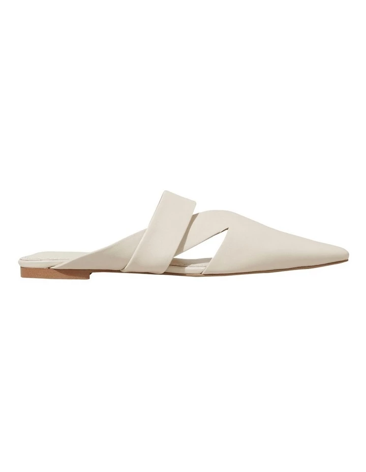 Upgrade your work day wardrobe with these sleek flats, designed with a sharply pointed toe and sweeping strap detail. Crafted from premium leather, the slip on flats feature bands running across and along the side of the foot, with an open heel design and soft supported sole.