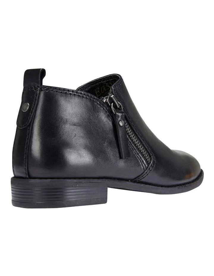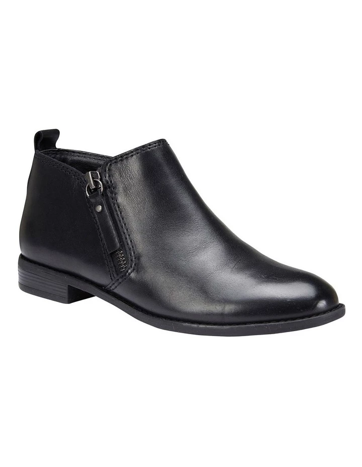 With on-trend zip detailing and pull back tab, STRIKE makes the right moves to become a winter staple style. This low cut bootie is crafted with extra padding and a comfortable almond shaped toe to ensure the utmost comfort and practicability. Designed for a comfortable C-fitting. Approx. 2.5cm heel height Leather upper Fabric/Synthetic lining Synthetic grip sole Comfort fit (C-fit)