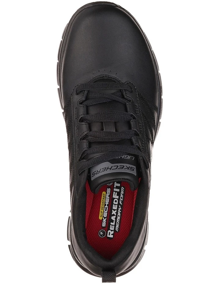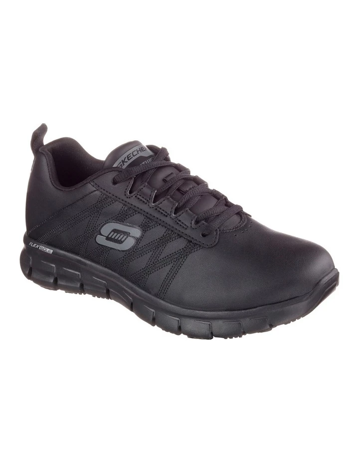 Sporty style, all day safety and comfort comes with the SKECHERS Work Relaxed Fit: Sure Track – Erath shoe. Smooth leather upper in a lace up sporty casual comfort work slip resistant sneaker with stitching accents and Memory Foam insole. 76576.