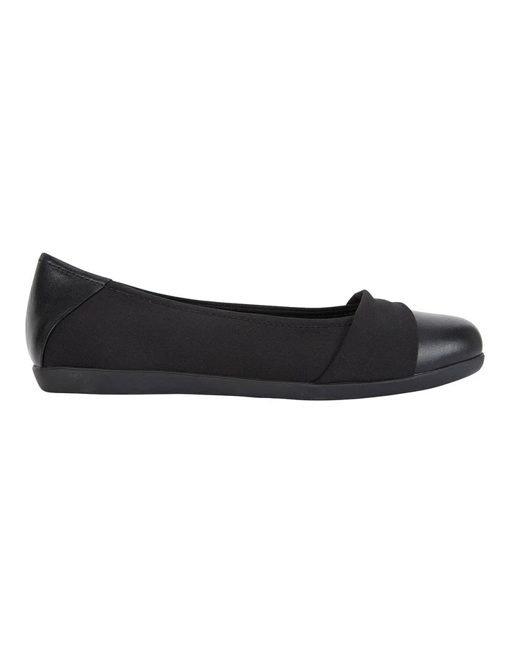 The Fenton ballet flat features a rounded toe with a combination of leather and fabric upper. It is a classic essential that is perfect for corporate or casual styling. Approx. 1cm heel Leather upper Synthetic lining Synthetic sock Thermoplastic grip sole Wide comfort fit (C+fit)