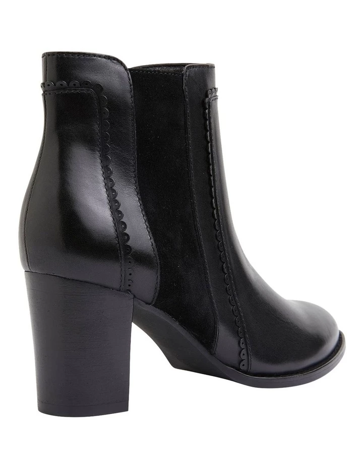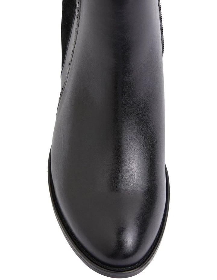 The GALILEO boot has the best of both worlds. Showcasing a leather panel at the front and a soft suede detail in the middle. Featuring and almond toe and sitting on a 5.5cm block heel, you won?t want to take them off. Approx. 7cm heel height Leather upper Leather lining Synthetic sole Standard fit (B-fit)