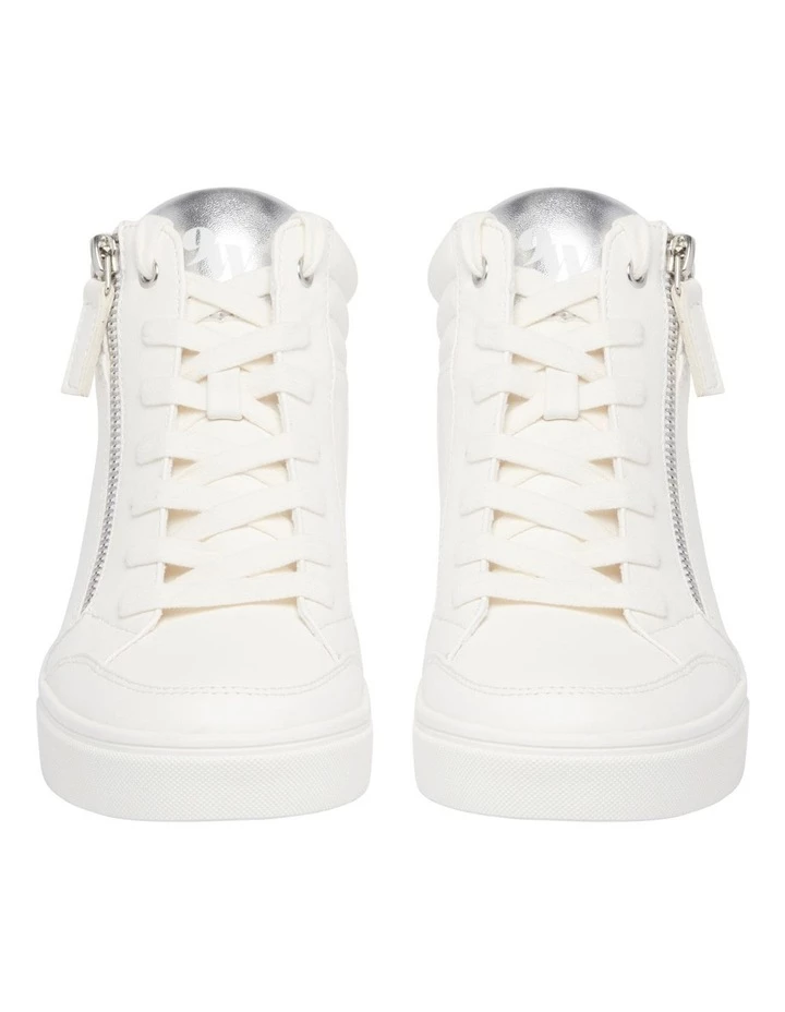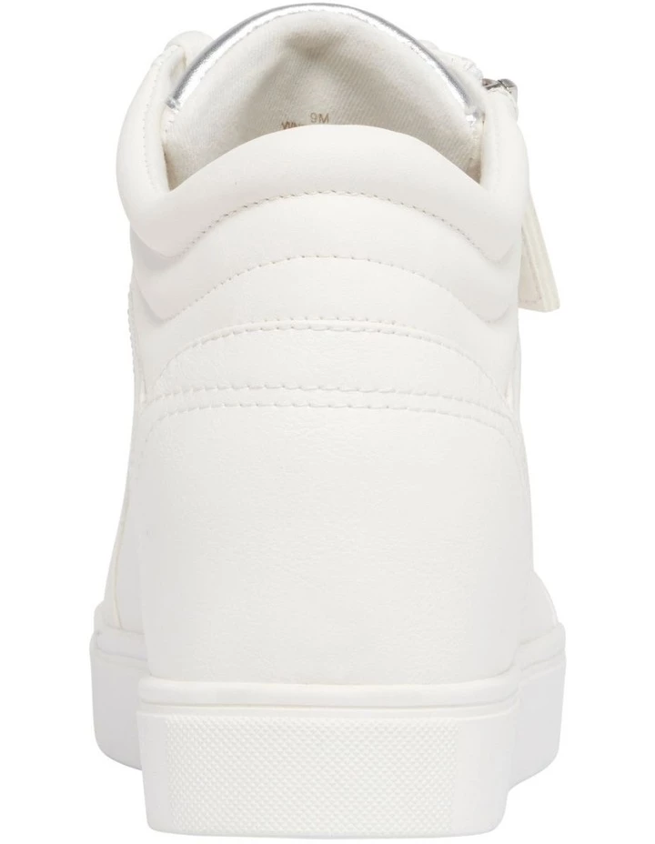 Shake up your Sneaker game with the Tons Sneaker. This trendy wedge sneaker will level up your sports luxe and casual style with its sleek side zip design feature, lace-up functioning and rounded toe. The subtle and understated Nine West logo detailing on the tongue of the sneaker adds to the effortless everyday aesthetic of Tons.Please Note there is a hidden wedge inside this sneaker and heel measurement does not include the white sole.