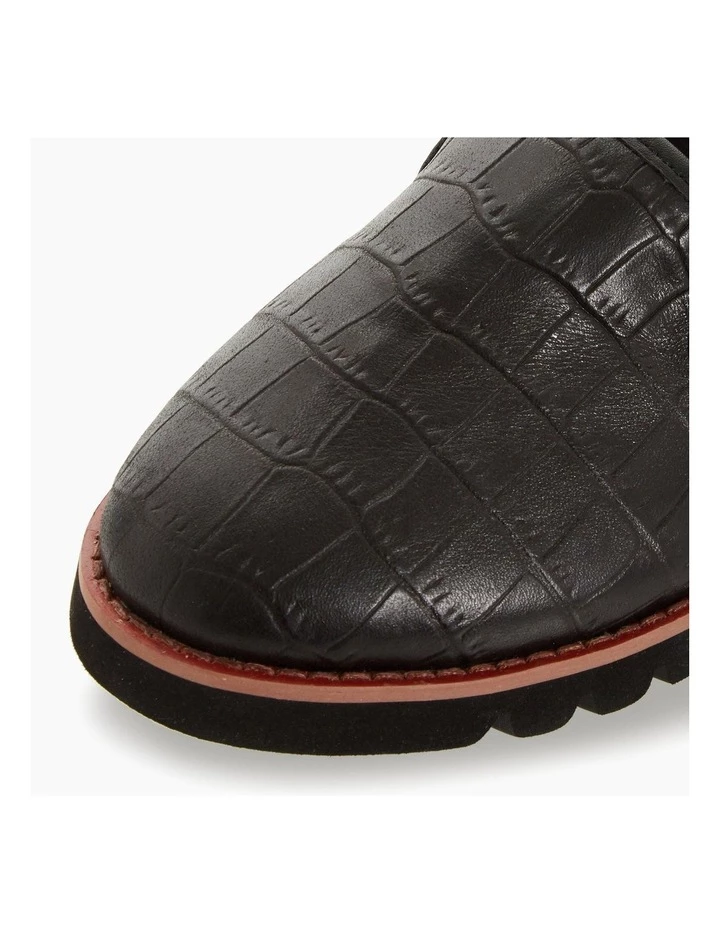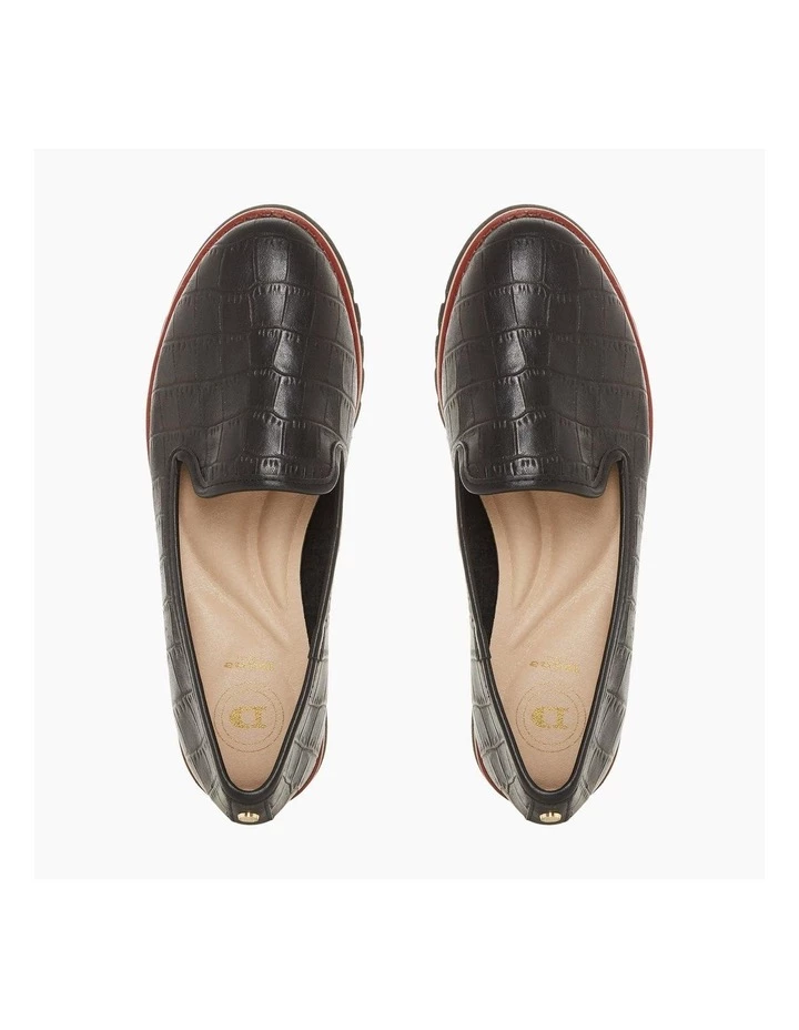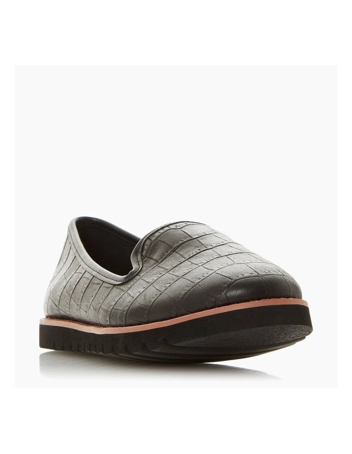 The Galleon loafer from Dune London is a versatile styling option. Showcasing a leather upper with a textured finish and contrasting sole. It features a slipper-cut design and a classic round toe.