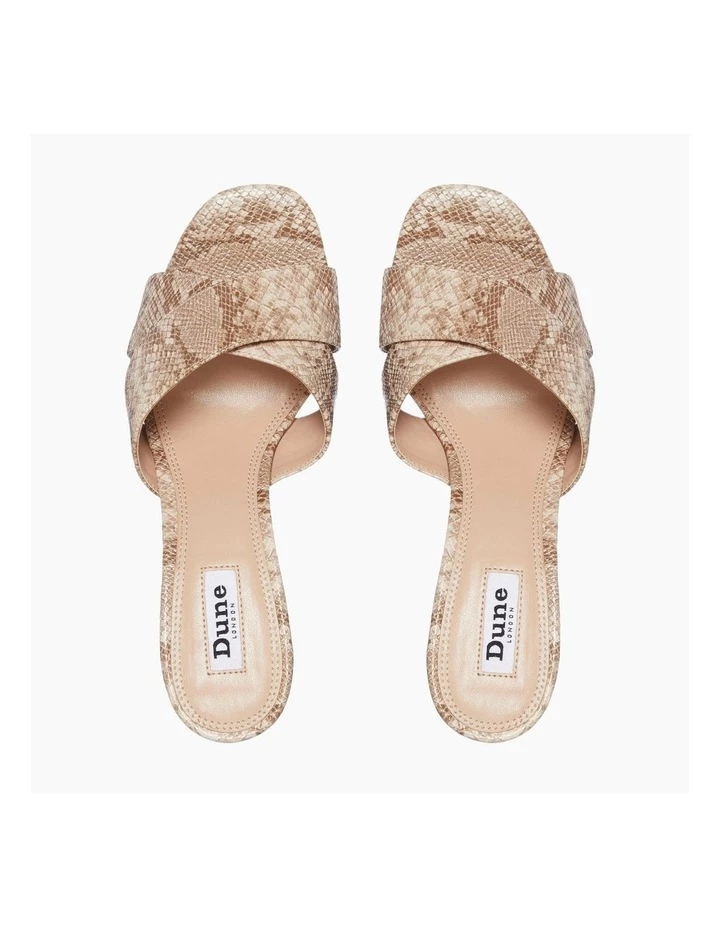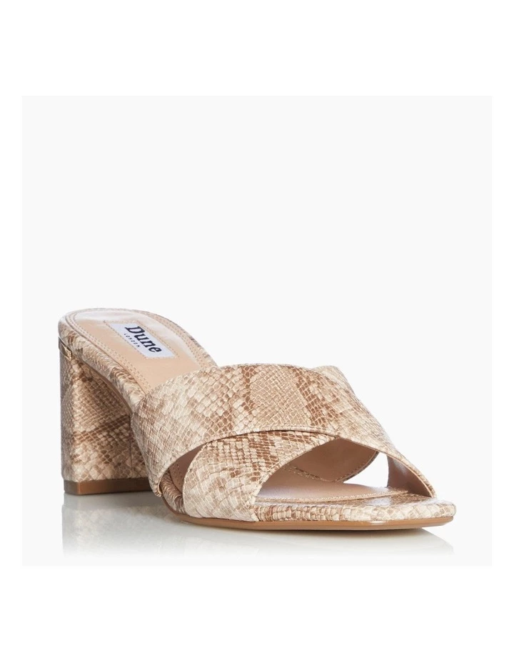 This sandal is the perfect choice for adding to your party line-up. In a classic slip on style it has hardware wrapped around the block heel. Finished with an open sandal toe and stylish cross over upper straps.