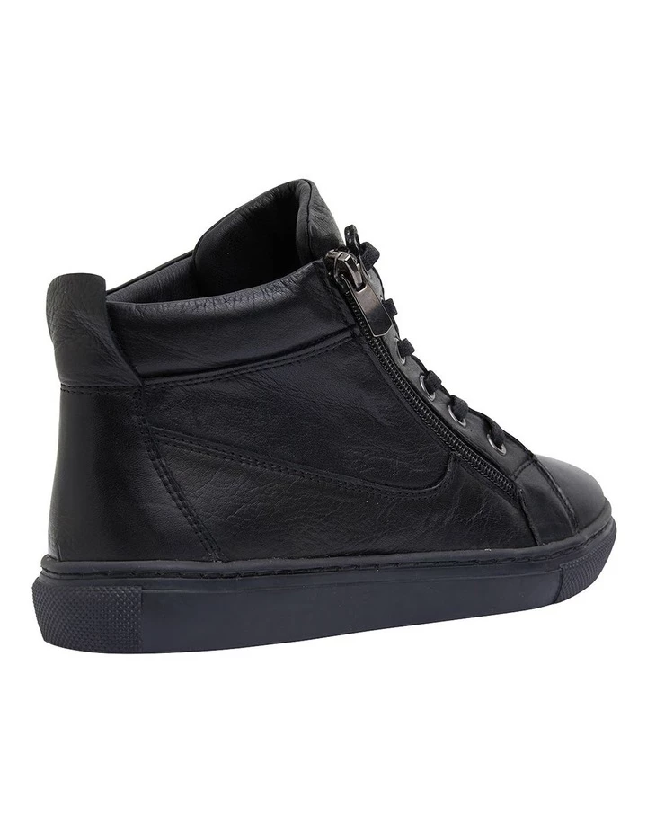 WAGNER boot sneaker blends sport with contemporary street aesthetic. The contrasting rubber sole gives it a versatile finish, lace-up front and side zip. Approx. 1 cm heel Leather Upper Synthetic lining Synthetic sole Comfort fit (C-fit)