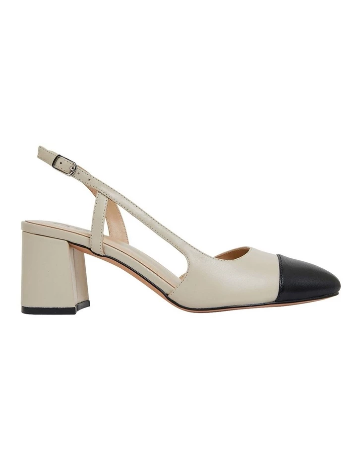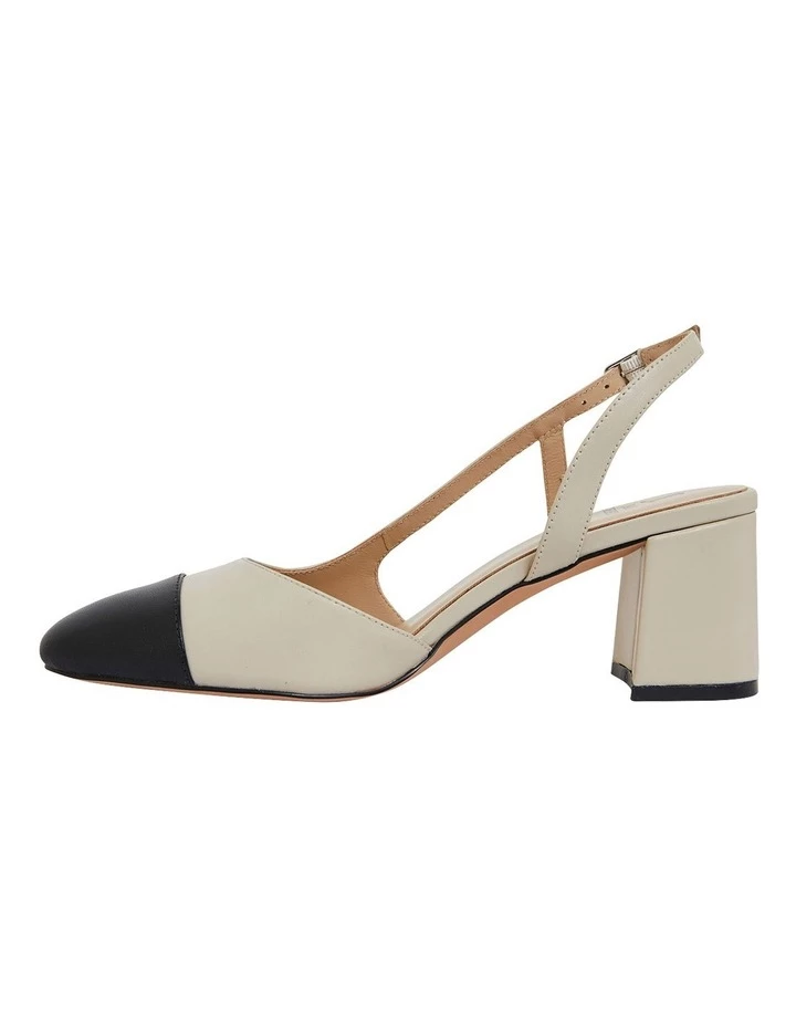 Elegance and poise takes shape in this seasons most coveted pump, CHAPTER. This block heel pump is crafted with a sleek slingback, contrasting toe-cap and side cut out detailing which offers comfort for all day wear. We love to take this style from desk to date-night!