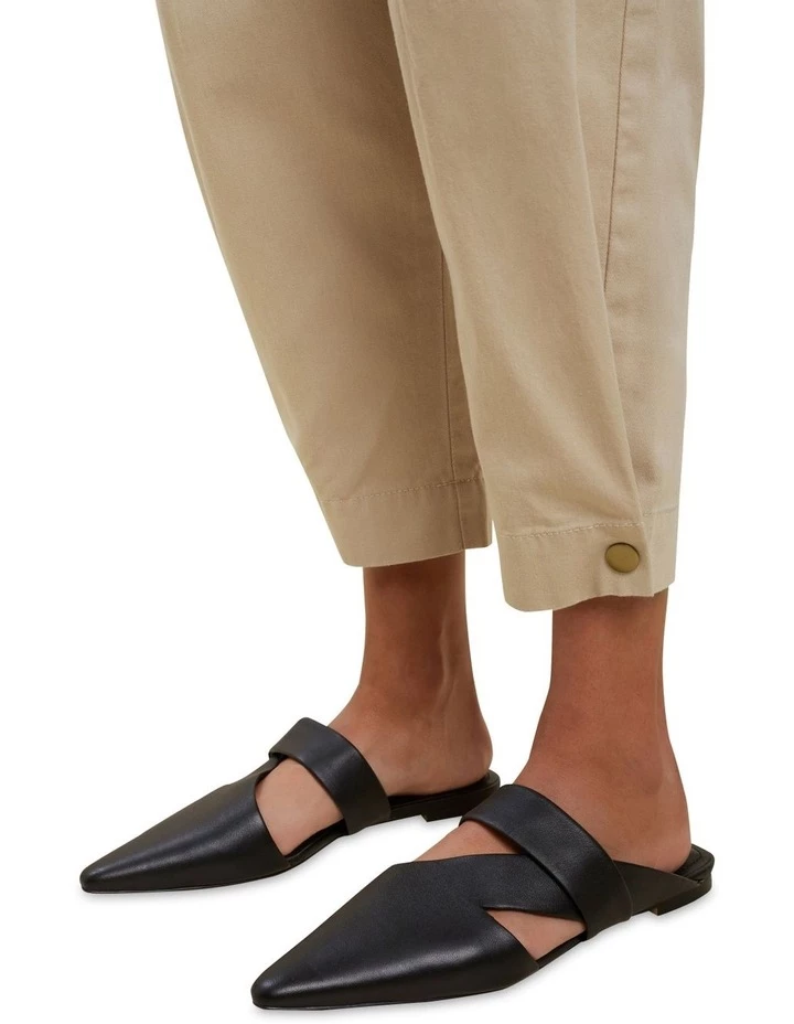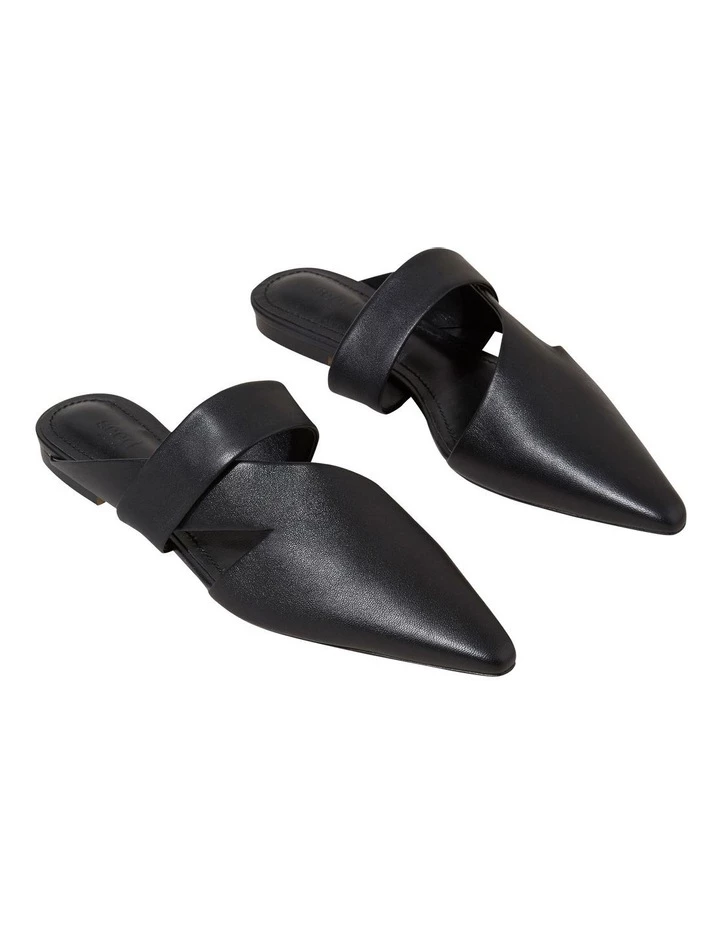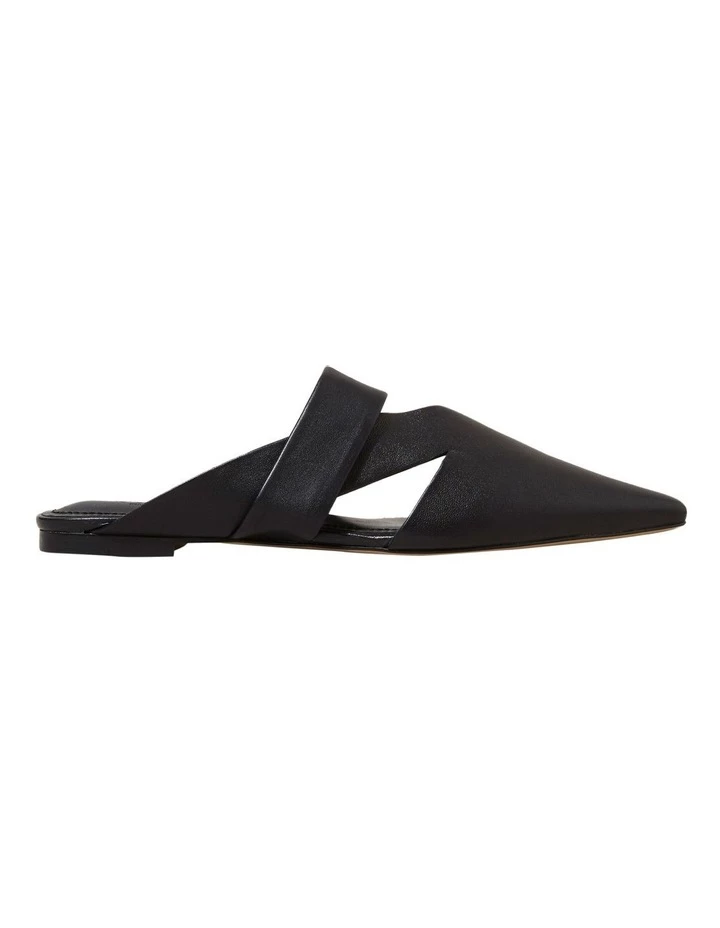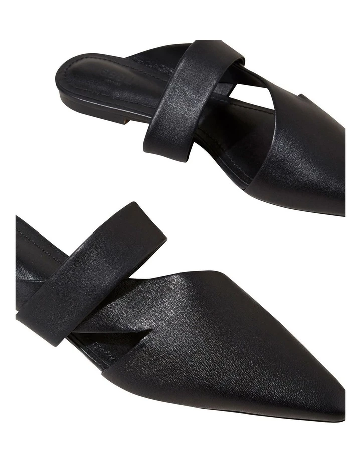 Upgrade your work day wardrobe with these sleek flats, designed with a sharply pointed toe and sweeping strap detail. Crafted from premium leather, the slip on flats feature bands running across and along the side of the foot, with an open heel design and soft supported sole.