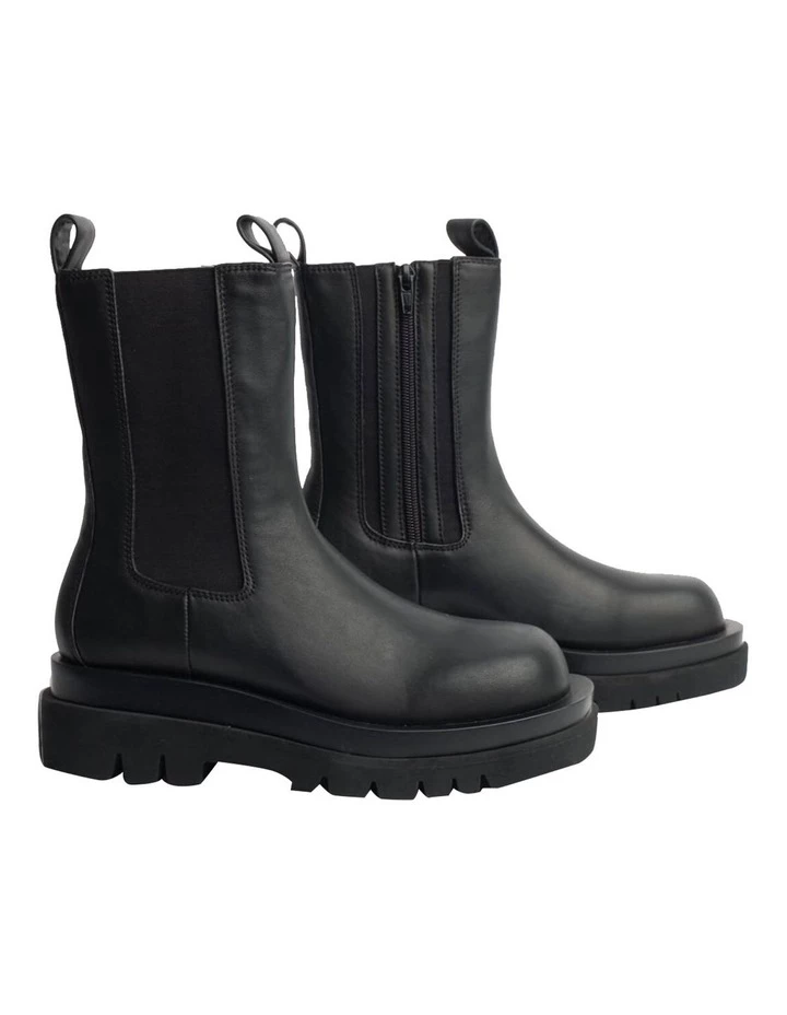 The boot of all boots is here. Meet Boxer, she’s our newest combat ankle boot with an edge. Designed with a rounded toe, an exposed chunky sole, side gussets with an inner zip to the ankle and twin pull tabs at the top. Finished with our all new leather upper and lining, alongside a cushioned foot-bed, this is a style not to be missed.-Material: ALL NEW Leather Upper & Lining -Sole: Man-Made -Fit: Runs large, we recommend purchasing a half size down -Toe-shape: Rounded-Features:Side gussets, inner ankle zip -Leg Height: 18cm-Heel: 6cm