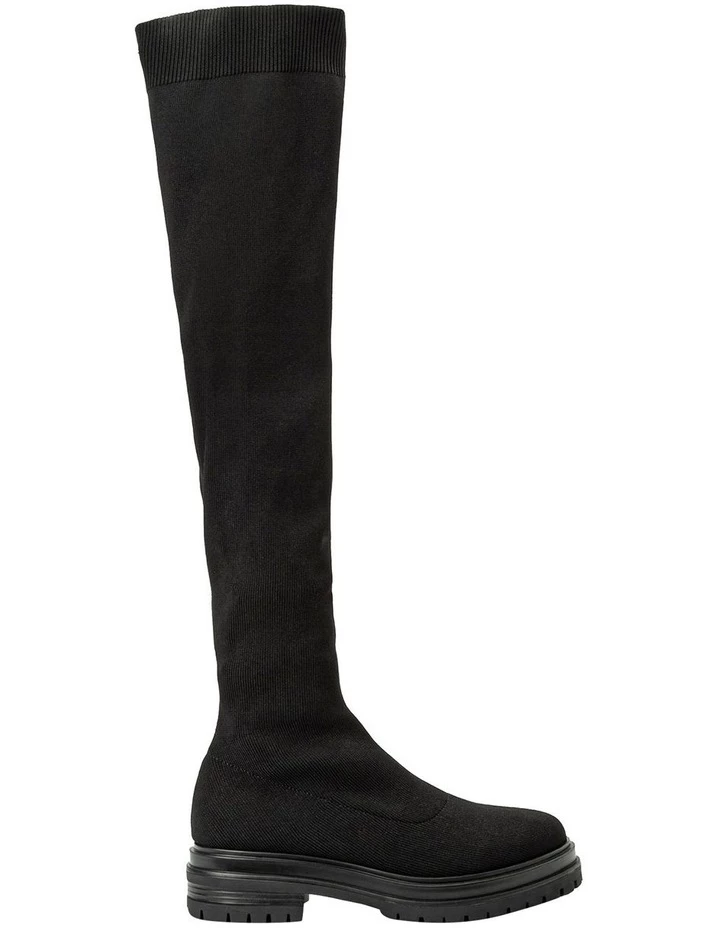 Cool by name and by nature, introducing <winter the over-the-knee sock boot you need this season. With a chunky platform lug sole, stretch sock upper and sleek silhouette, this design is the modern take on the classic black boot.</winter