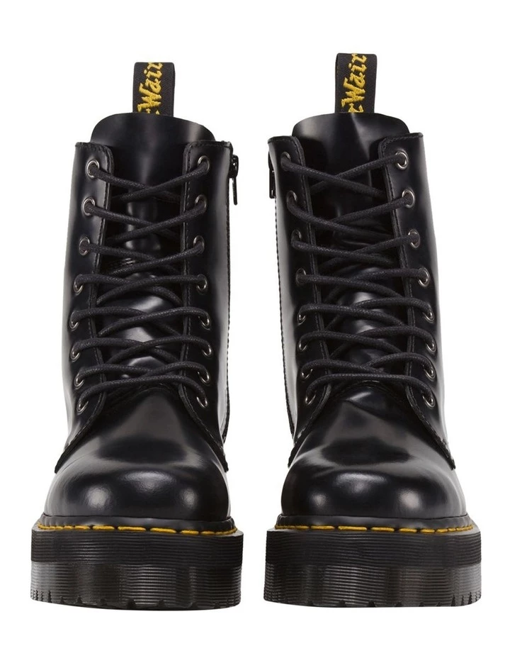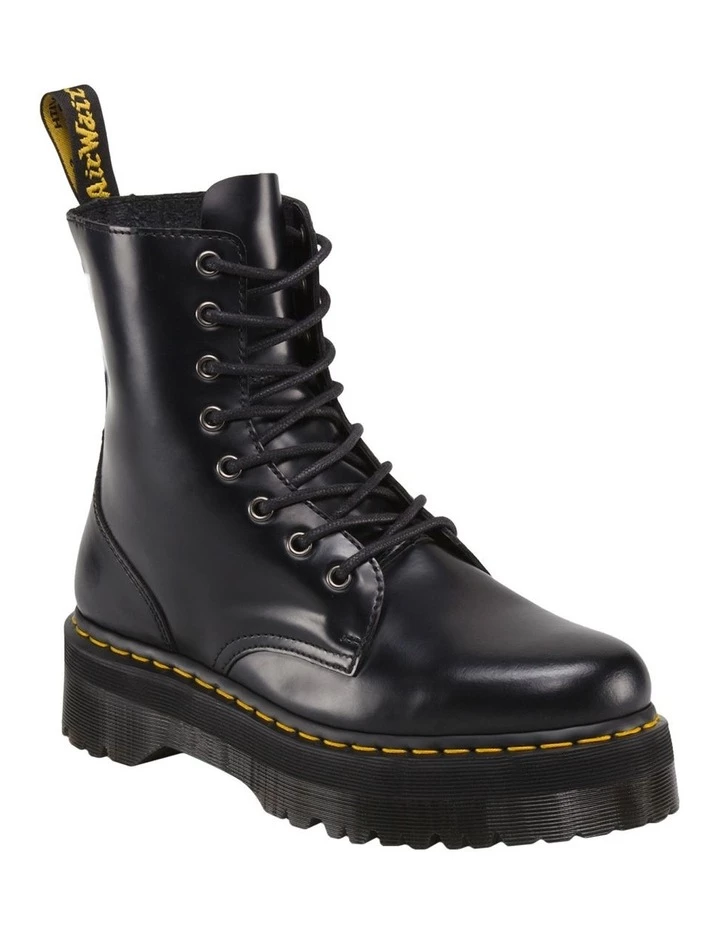 A fierce evolution of our 8-eye boot, the Jadon retains all its original details grooved edges, yellow stitching and a heel-loop and adds a chunky, empowering platform sole.