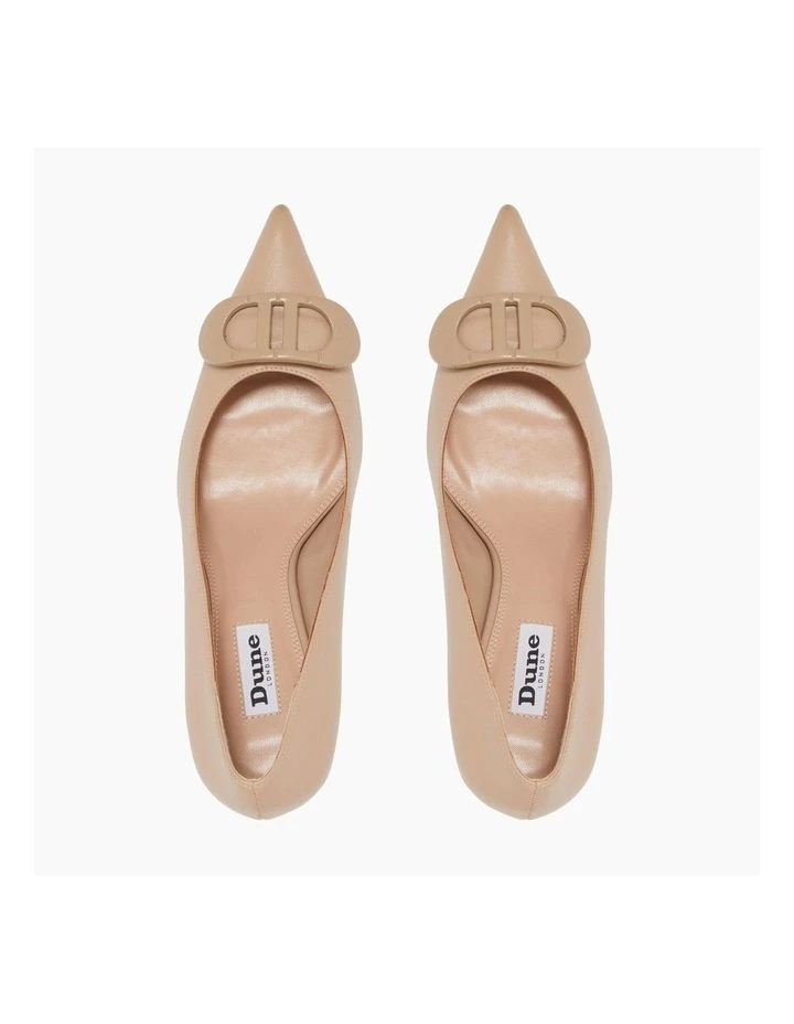 Demand attention in the Brioni stiletto heel from Dune. It rests on a slim stiletto heel and boasts a striking pointed toe. The style is complete with Dune signature hardware detailing.