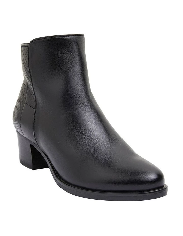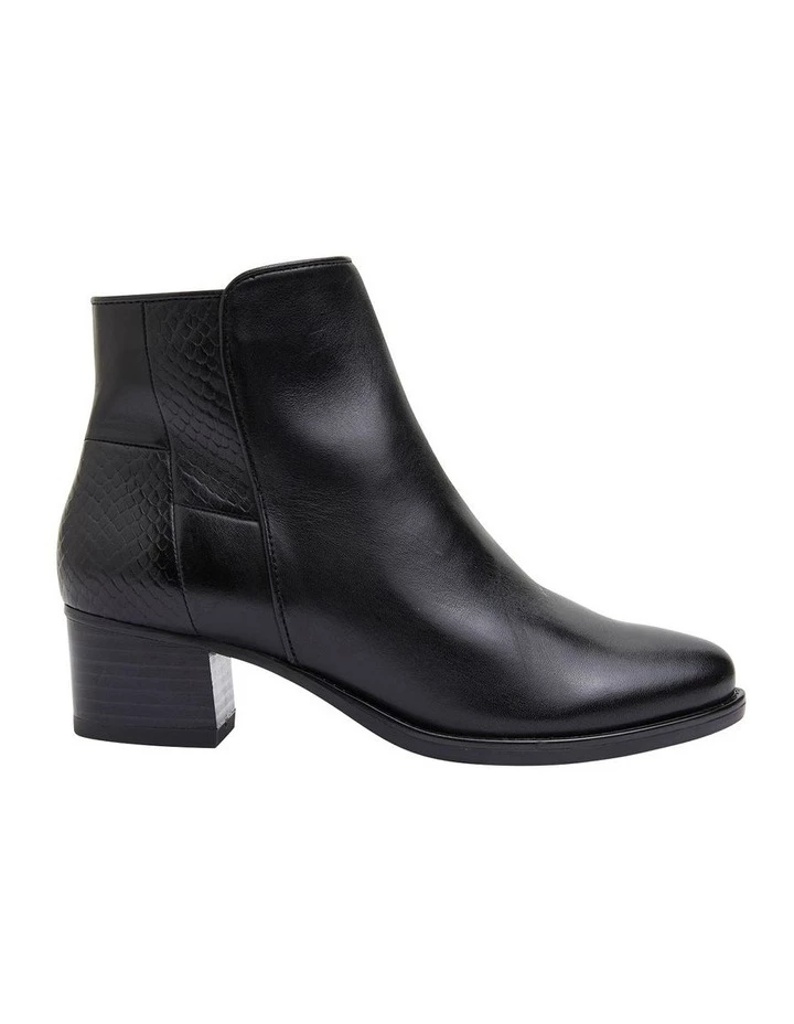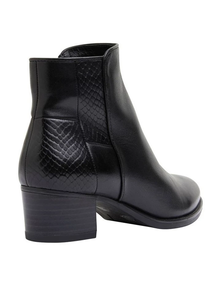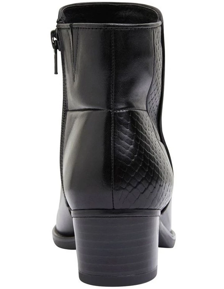 Add an elegant touch to your weekend ensenble with DAPPER. Featuring contrasting croc inspired print pannels and a low block heel, this ankle boot provides all day comfort when you need it. Pair this style with opaque stockings and your favourite print dress for a desk-to-dinner outfit you will love! Approx. 4cm heel height Leather Upper Synthetic lining Synthetic sole Comfort fit (C-fit)