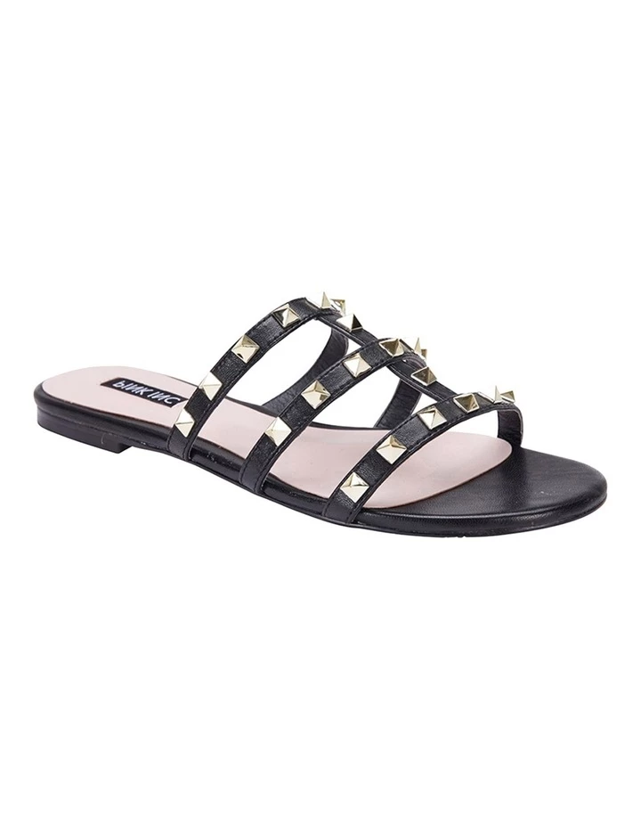 Slide into summer in SPAIN. Adorned with statement pyramid studs and crafted from quality metallics and leathers, this slide is sure to be your newest go-to style no matter the occasion.
