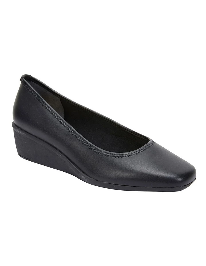 PRISM boasts all day comfort! Featuring classic upper styling and low wedge heel for added support, this pump has your desk days sorted. Designed for a comfortable C-fitting. Approx 4cm heel height Leather Upper Synthetic Lining Synthetic Sole