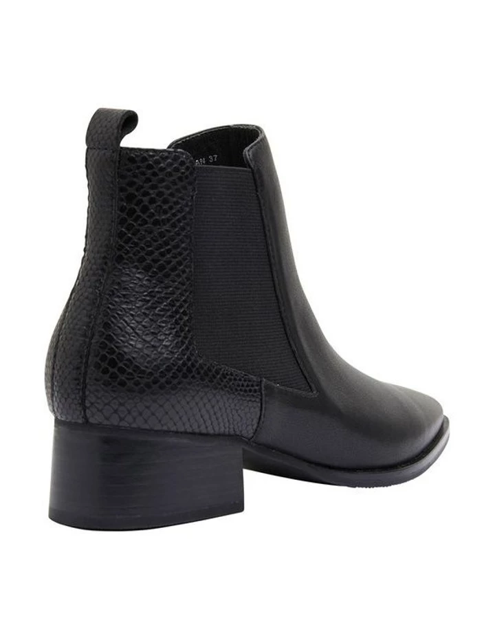 DECAN boats clean and sleek styling, with a perfect mixture of comfort and style. This ankle boot features scorched snake print detailing, elastic gussets and a pointed toe shape. Pair with opaque stockings for a corporate feel or tailored denim jeans for a weekend edit. Approx. 4cm heel height Leather upper Leather lining Synthetic sole