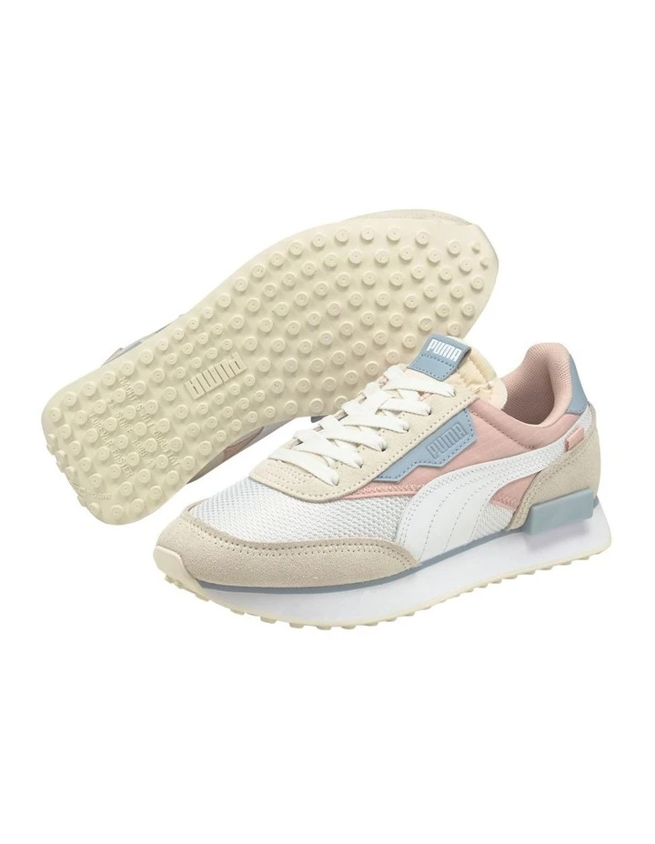 Born in 1980, the Fast Rider launched when the sport of running started to move from the track to the street. One of our most comfortable yet simplistic icons, it featured super-light, padded nylon, suede, leather reinforcements, and the shock-absorbing PUMA Federbein" outsole. In 2020, we revamped the Fast Rider as the Future Rider, featuring a slim Federbein and ultra comfortable Rider Foam. This execution features a closed mesh base with suede overlays and a matte TPU plug.