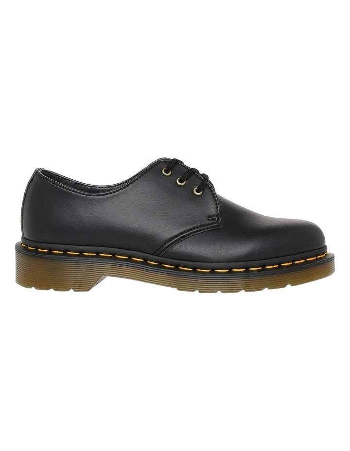 Our black Felix Rub Off is a high-shine synthetic material with a premium feel and a subtle, two-tone finish. But the unisex shoe is still a Doc through and through, with grooved sides, yellow stitching and our iconic air-cushioned sole, that’s oil-and-fat resistant with good abrasion and slip resistance.