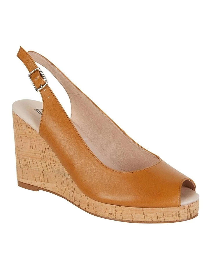 Davina is the Summer wedge with a subtle feminine touch. It boasts a minimal and chic silhouette with a peep toe and cork platform wedge, perfect for all day wear. Approx. 1.5cm platform sole Approx. 8.5cm heel height Leather upper Leather lining Synthetic sole Standard fit (B-fit)