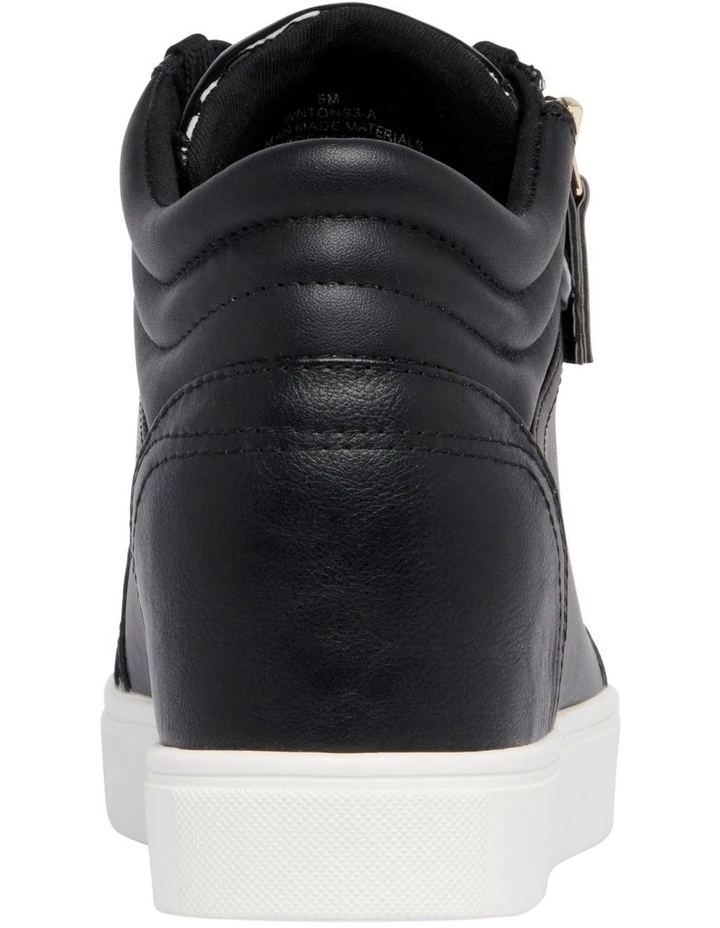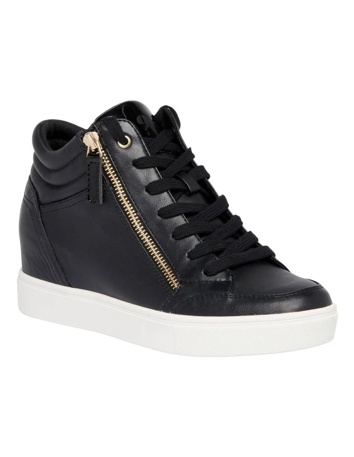 Shake up your Sneaker game with the Tons Sneaker. This trendy wedge sneaker will level up your sports luxe and casual style with its sleek side zip design feature, lace-up functioning and rounded toe. The subtle and understated Nine West logo detailing on the tongue of the sneaker adds to the effortless everyday aesthetic of Tons.Please Note there is a hidden wedge inside this sneaker and heel measurement does not include the white sole.