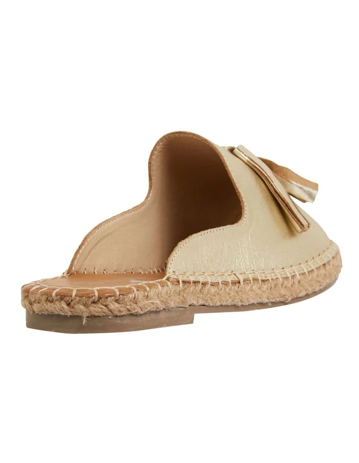 BLINK is a comfortable reimagining of the summer espadrille with a playful feel. This slip on design is crafted using a leather upper accented with a complementing tassle, then stitched onto a woven flatform.