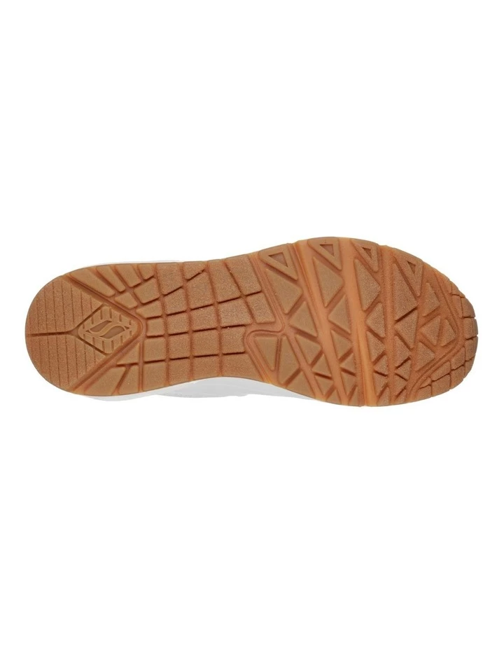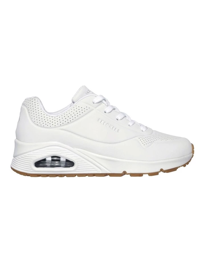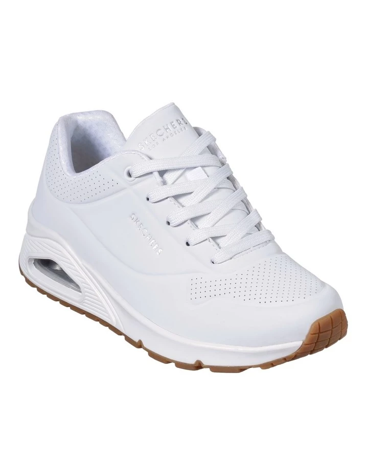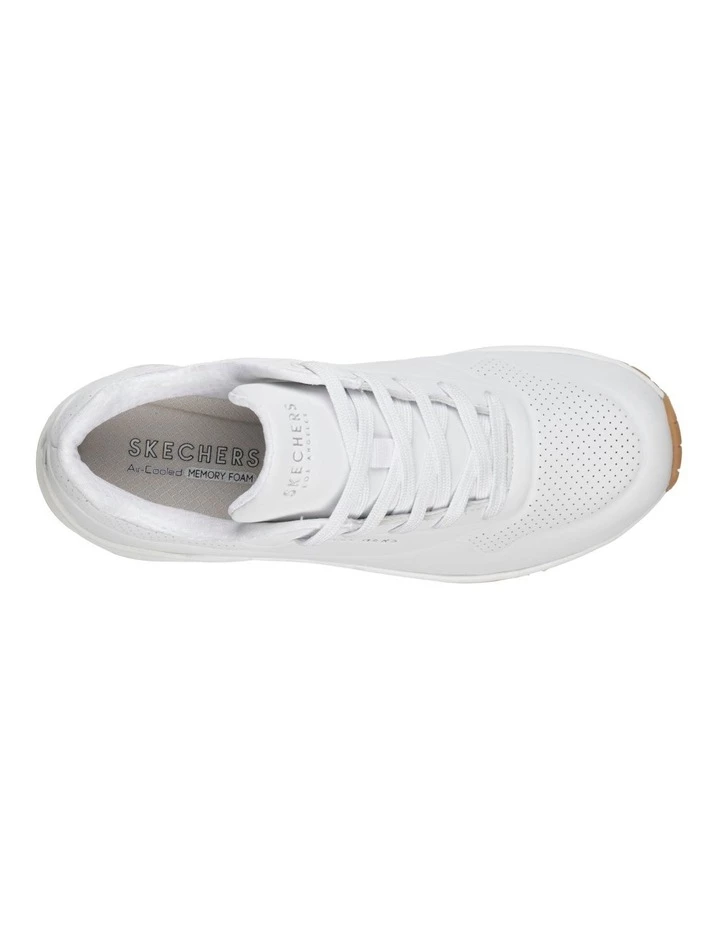 Classic air cushioned style meets updated comfort in the SKECHER Street Uno – Stand on Air shoe. Smooth leather-textured synthetic upper in a lace up classic fashion sneaker with stitching and perforation accents. Air Cooled Memory Foam insole, visible air cushioned midsole. 73690. Synthetic upper, fabric lining, rubber sole.