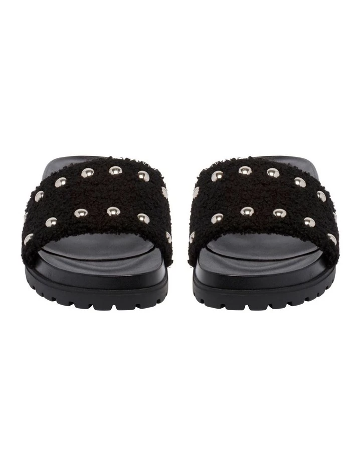Feel fun, funky and fancy in the Freely Sandal. This flat summer slide has a sturdy and chunky sole adding an element of depth into this favourite summer slide silhouette. The cosy texture of the wide band across the vamp and toes together with its rounded stud embellishments create an on-trend and fashionable characteristic to this everyday summer staple. The comfortable footbed of Freely means this sandal is the ideal summer companion to transition you from brunch to beach.