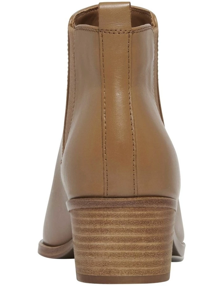 The classic and minimalistic design of the Savita Boot will effortlessly look chic and classic with almost any outfit. The sleek pointed toe front, sturdy low block heel and pull on tab at the back of the ankle means for a comfortable yet fashionable wear. The small stitching detail around the elasticated sides and boot opening adds an interesting design feature to this otherwise simple and minimal boot aesthetic.