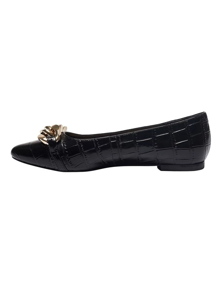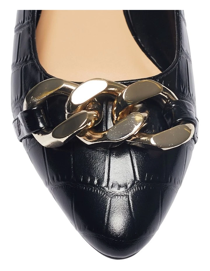 Favour LACEY over your workwear heels for a comfortable office friendly alternative. They’re crafted with a leather upper to a sharp pointed toe and feature a chunky chain detailing elevating the simple flat silhouette. Wear them beneath sharp tailoring for a modern slant.