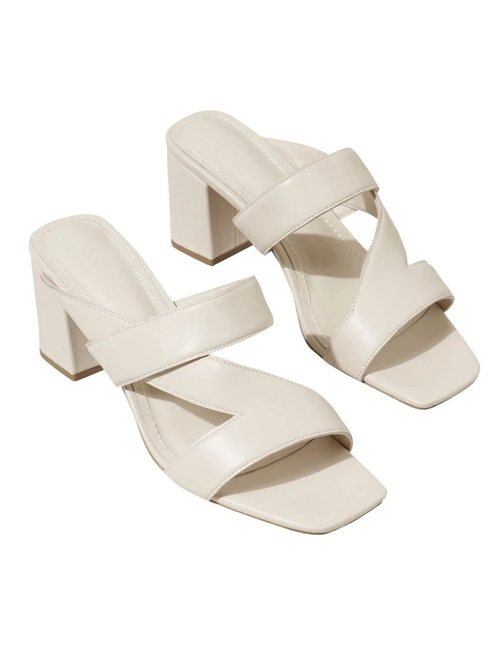 These premium leather heels are perfect for elevating any look, with a subtle strap design and on trend square toe. The slip-on shoes have an 8cm heel to elongate the leg, and the leather straps sweep across and up the foot.